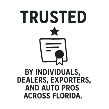 We simplify Florida vehicle paperwork: titles, plates, registrations, sales documents, dealer licensing, filling of forms, and more — no DMV lines, no confusion.